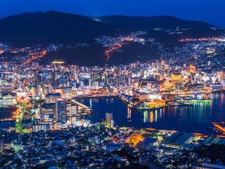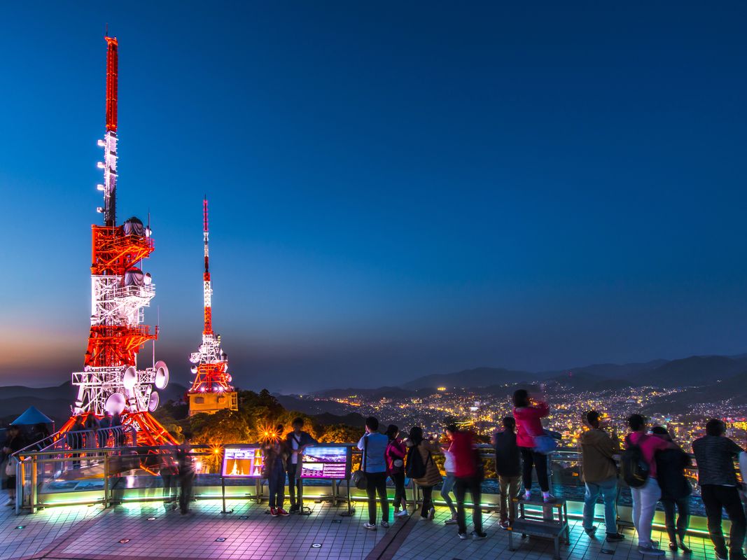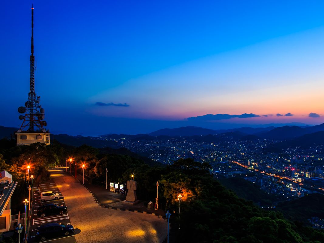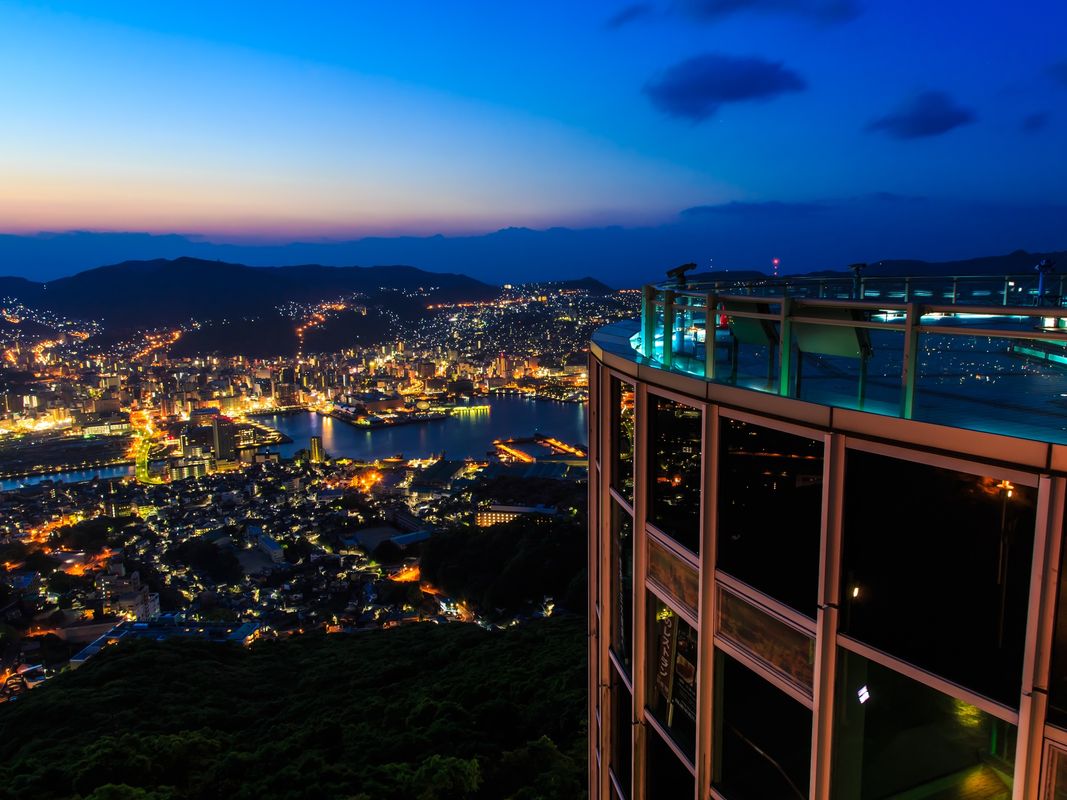 長崎市市街地の西部にそびえる標高333mの稲佐山山頂の展望台からの長崎の夜景観賞へご案内します。長崎は世界新三大夜景に認定された夜景の街です。ベストスポットの稲佐山に建つ3階建ての展望台から、宝石をちりばめたような長崎市街地の夜景をご覧ください。