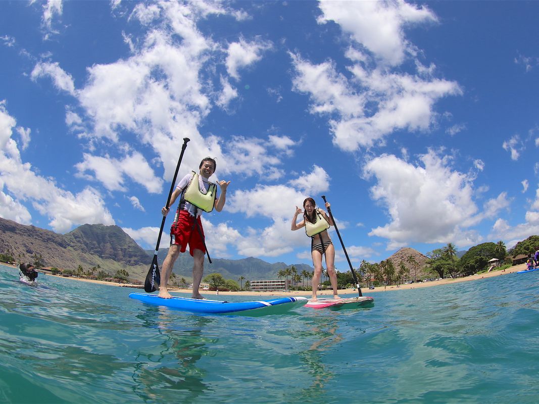 <ANAおすすめ!>日本語ガイド付き!ワイキキ名門カメ大學 野生のウミガメ シュノーケリング・クルーズ(スタンドアップパドル付き)by イルカハワイ