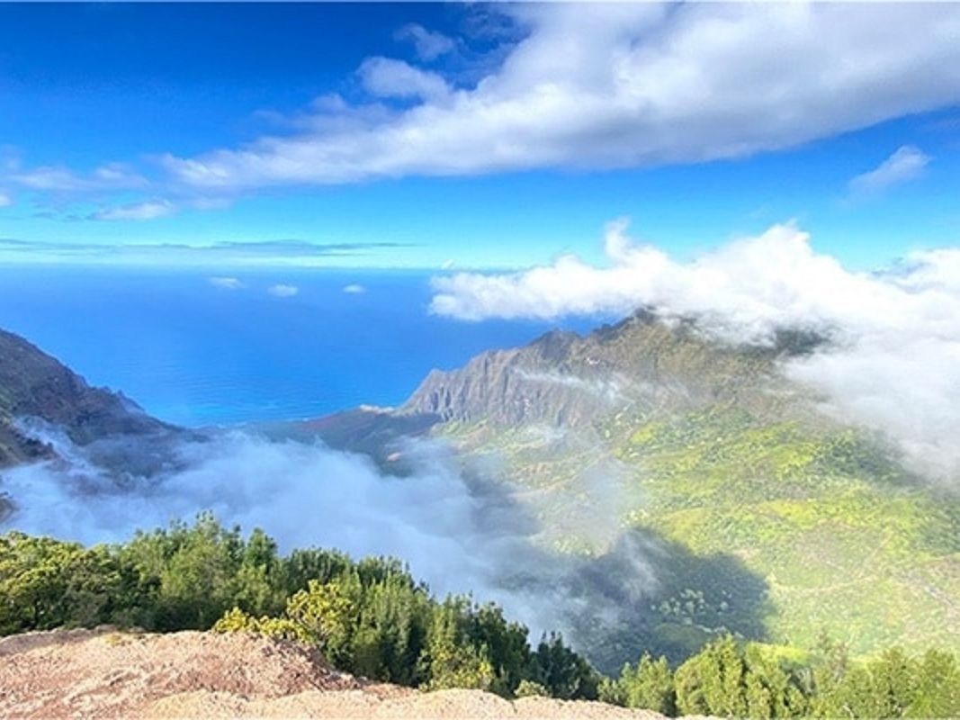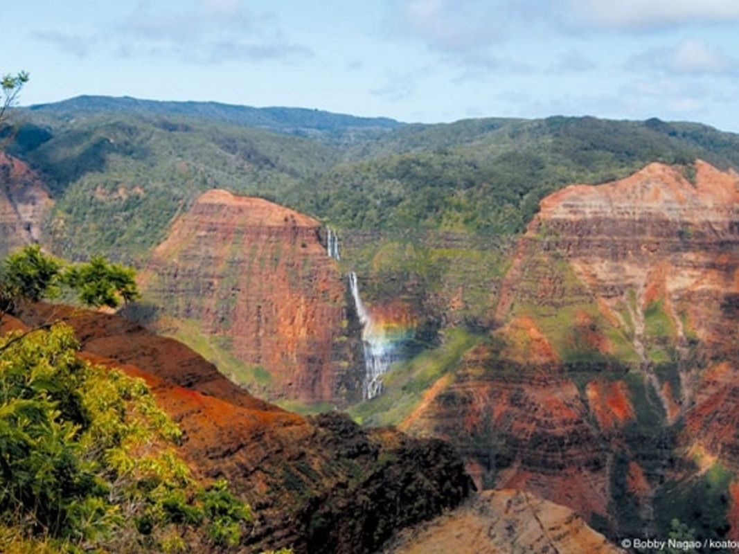 ハナペペ渓谷展望台からは、カウアイ島で最も高い山「カワイキニ」へ続く奥深いハナペペ渓谷を見晴らすことができます。“霧の虹(ミスト・ボウ)”で知られる「ワイポオの滝」や、カララウ展望台はナパリコーストとカララウ渓谷が目の前に広がる絶景ポイント。プウオキラ展望台では正面にナパリコーストが見えます。